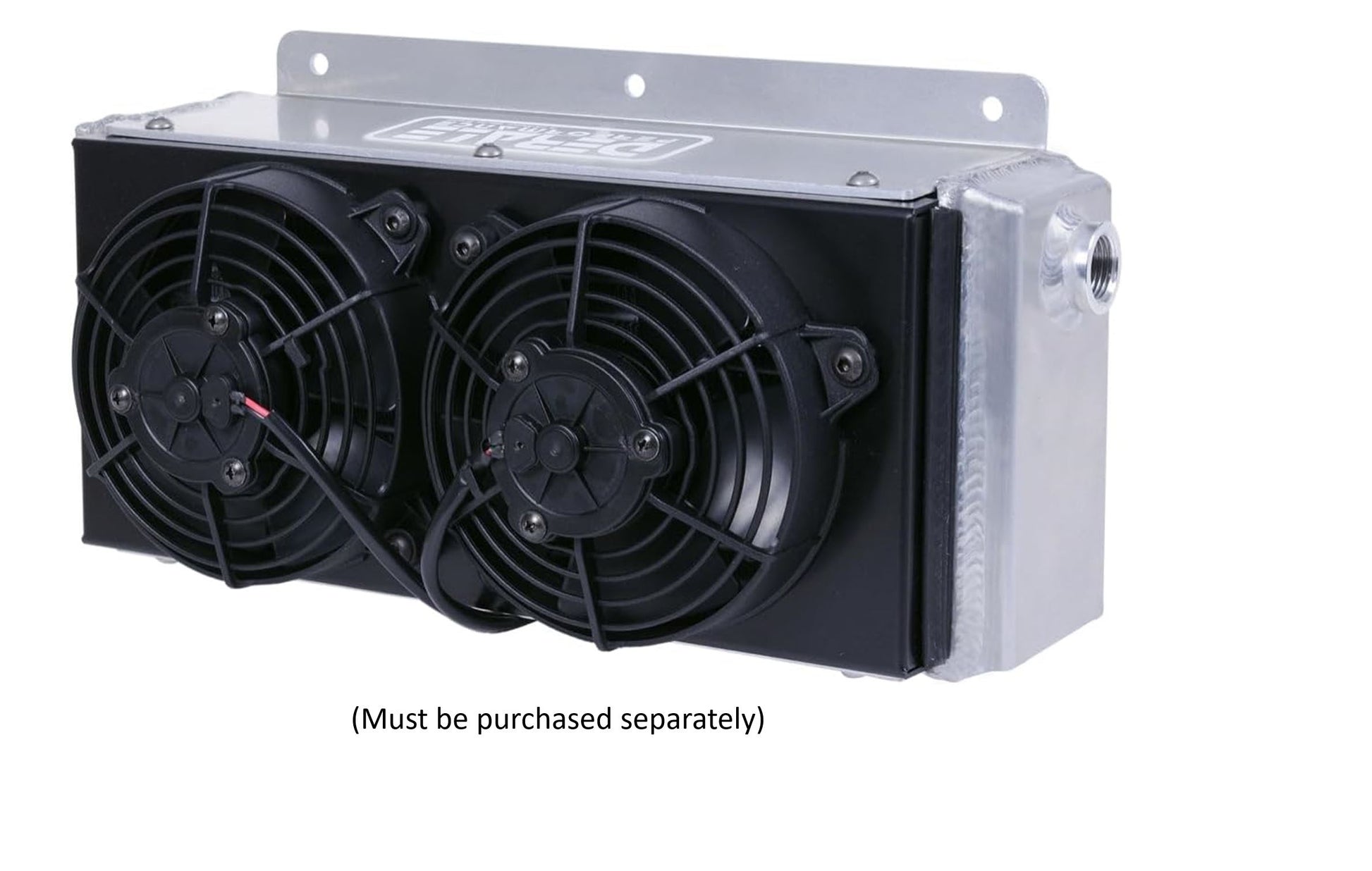 This kit uses dual fans to keep air flow over the cooler, even at low speeds. Added bonus that it cools your oil down rapidly when pitted. Thermostats on the fans keep them off during your car's warm up period.