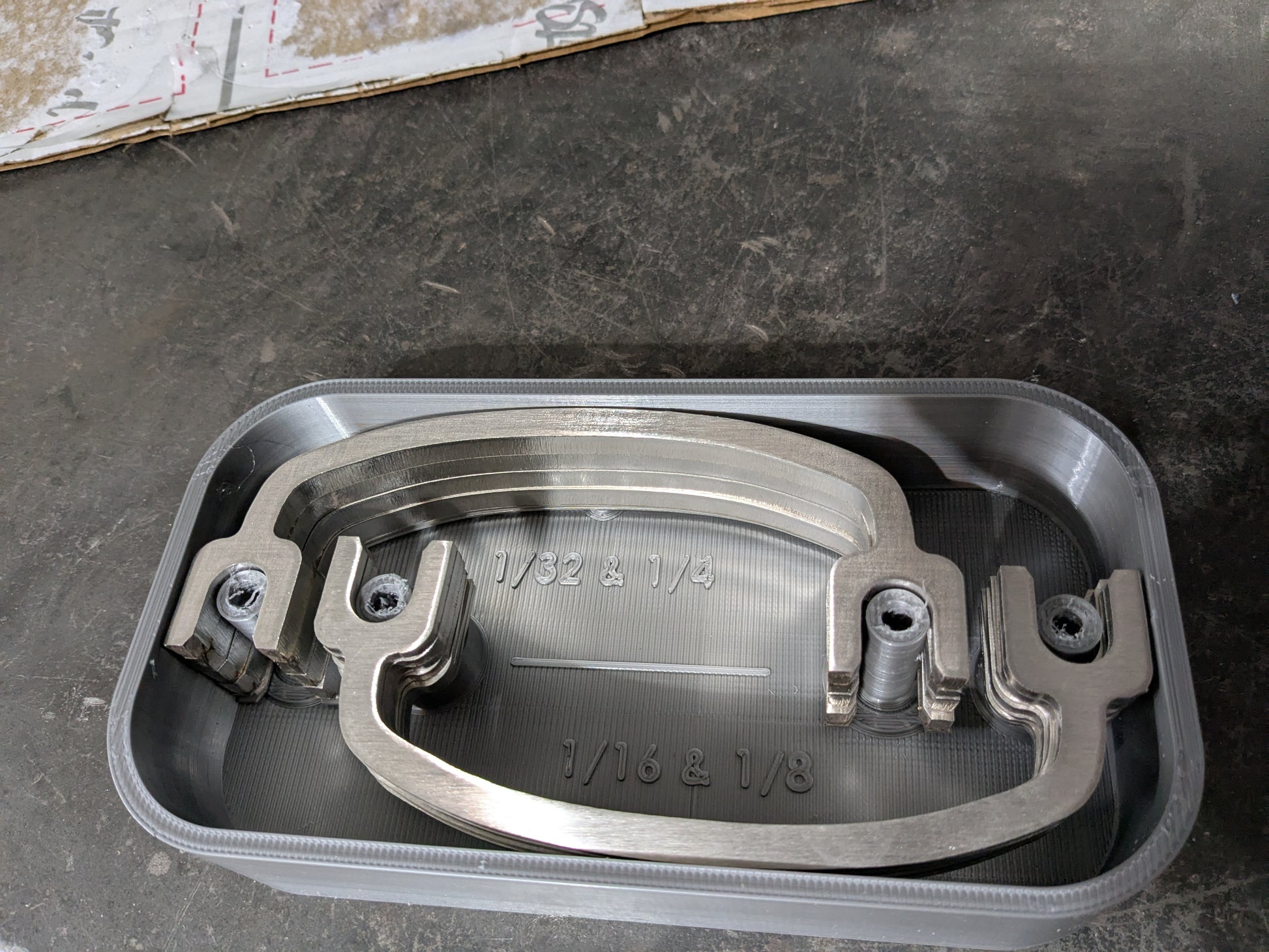 These shims are made from 304 Stainless, kit includes 4x each 1/4", 1/8", 1/16", 1/32" shims, Comes in a shipping/storage case which requires a 10mm wrench to open.